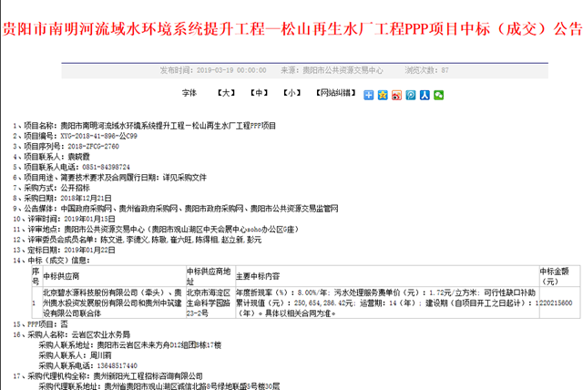 原標(biāo)題:2.2億元 碧水源聯(lián)合體中標(biāo)南明河流域水環(huán)境系統(tǒng)提升工程—松山再生水廠工程PPP項(xiàng)目