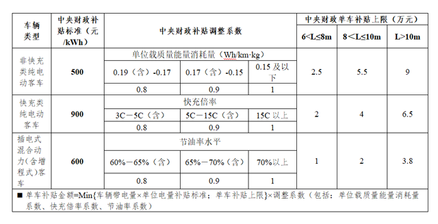 新能源客車補貼標準