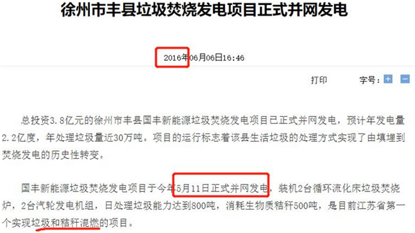 該項目因存在環(huán)境違法行為已于2018年4月關(guān)停,國豐新能源江蘇有限公司,被收回特許經(jīng)營權(quán),不再生產(chǎn)。