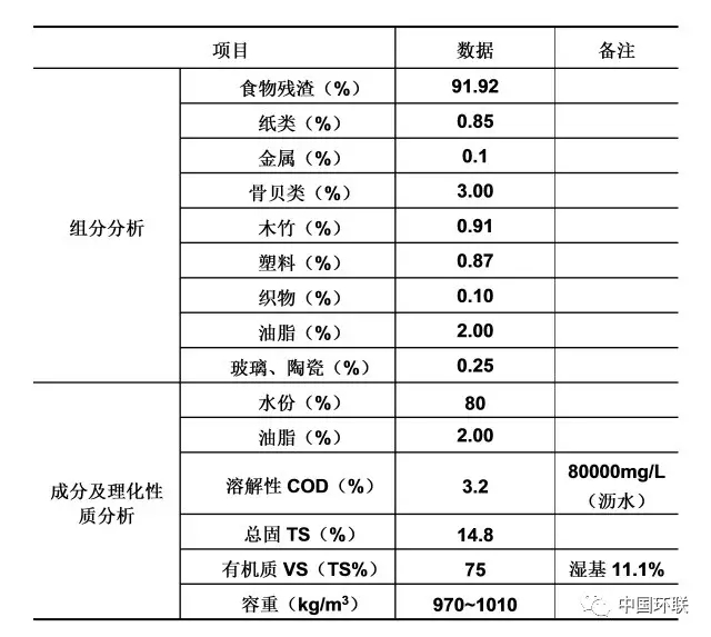 我國南方城市餐廚廢棄物組分、理化性質(zhì)分析表