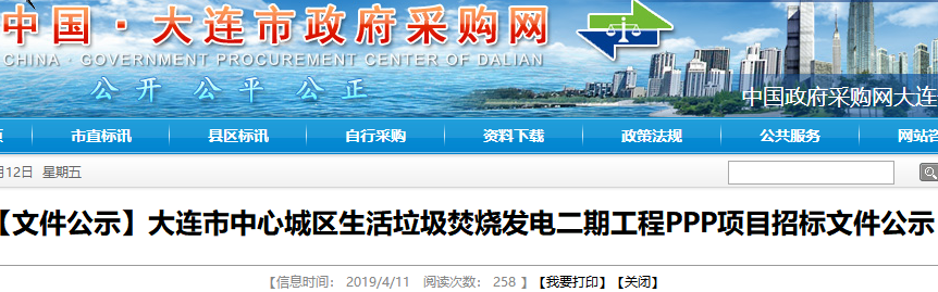 一、項目名稱:大連市中心城區(qū)生活垃圾焚燒發(fā)電二期工程PPP項目