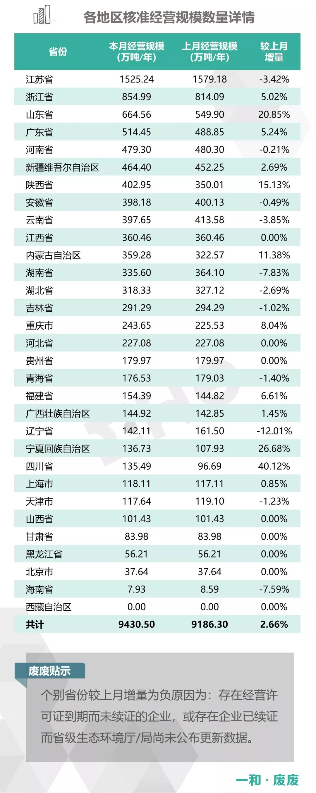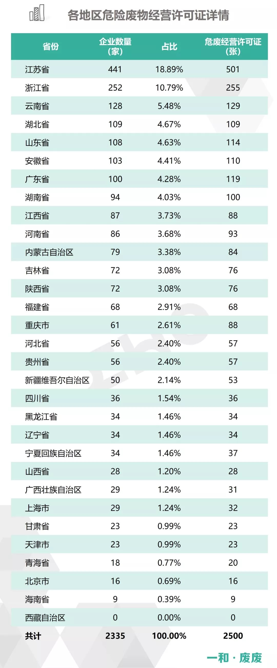 5.統(tǒng)計(jì)范圍:本次數(shù)據(jù)收集統(tǒng)計(jì)的范圍為省級(jí)生態(tài)環(huán)境廳(局)官方公布的持有危險(xiǎn)廢物經(jīng)營(yíng)許可證企業(yè)的數(shù)據(jù),因此由地級(jí)市發(fā)布的醫(yī)療廢物經(jīng)營(yíng)許可證、收集經(jīng)營(yíng)許可證,且未納入省級(jí)生態(tài)環(huán)境廳(局)公布數(shù)據(jù)的部分,并未計(jì)入統(tǒng)計(jì)數(shù)據(jù)中。