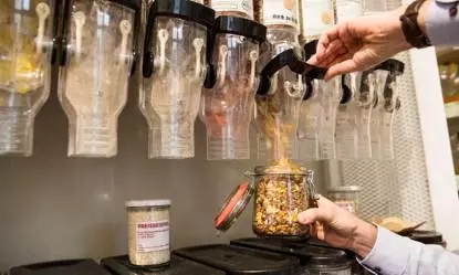 谷物、意面、堅果、咖啡、調(diào)味品、巧克力,以及水果干等食品雜貨都用瓶子裝起來,客人必須自帶瓶罐才能完成購買。此外,橄欖油等液體商品同樣裝在大型擠壓裝置里按需售賣。