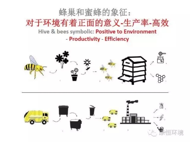 蜂巢狀玻璃幕墻的設(shè)計(jì)靈感來源于蜜蜂把花粉釀蜜的過程。設(shè)計(jì)師把每天奔波在城市中的眾多垃圾回收車輛比喻蜜蜂收集花粉的過程,把生活垃圾焚燒發(fā)電廠比喻蜂巢,將收集的生活垃圾在焚燒發(fā)電廠變成清潔能源的過程比喻蜜蜂釀蜜,非常形象的展現(xiàn)了康恒寧波鄞州垃圾焚燒發(fā)電廠的建造理念。