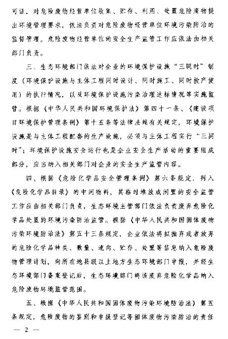 4、生態(tài)環(huán)境主管部門依法負(fù)責(zé)廢棄危險化學(xué)品處置的環(huán)境污染防治監(jiān)管。