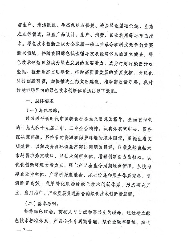 綠色技術創(chuàng)新是綠色發(fā)展的重要動力,是打好污染防治攻堅戰(zhàn)、推進生態(tài)文明建設、促進高質量發(fā)展的重要支撐。要以解決資源環(huán)境生態(tài)突出問題為目標,堅持市場導向,強化綠色引領,加快構建企業(yè)為主體、產學研深度融合、基礎設施和服務體系完備、資源配置高效、成果轉化順暢的綠色技術創(chuàng)新體系,推動研究開發(fā)、應用推廣、產業(yè)發(fā)展貫通融合。