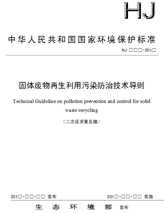 2.《固體廢物再生利用污染防治技術(shù)導(dǎo)則(二次征求意見稿)》編制說明