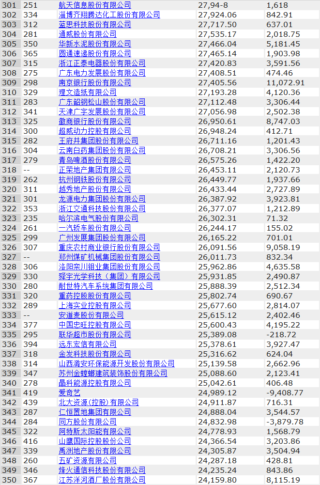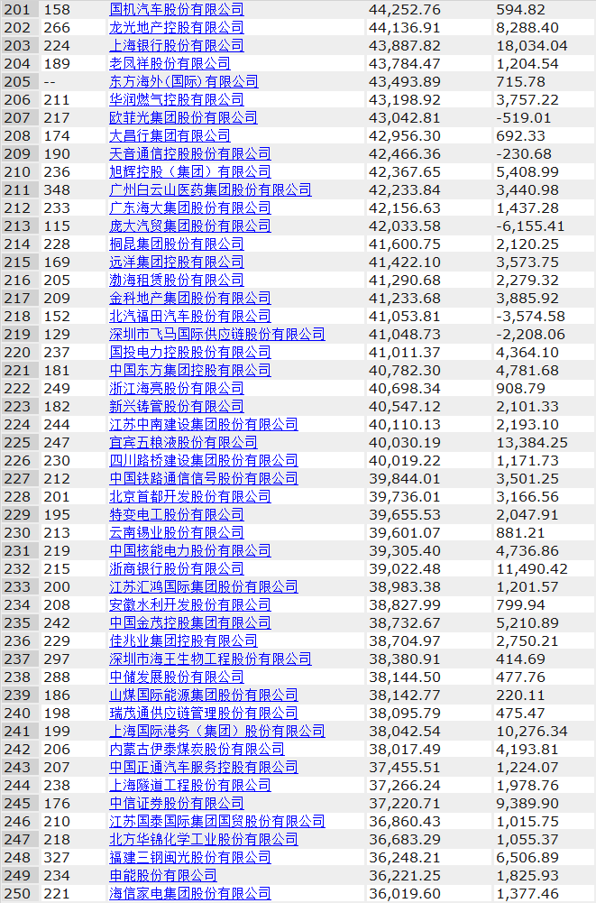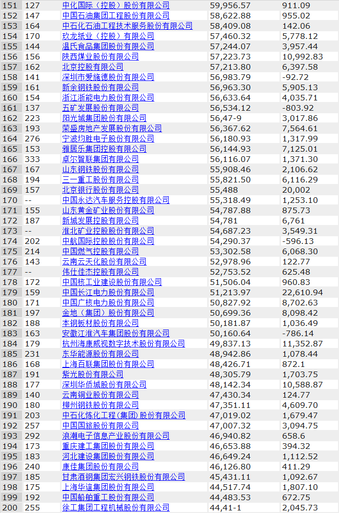 其中中電建、海螺水泥、光大銀行、金隅集團(tuán)、北京控股、浙能電力、雅居樂、康佳集團(tuán)、中船重工、徐工集團(tuán)分別入圍前200強(qiáng),海螺水泥排名由去年的103位上升至71位,康佳表現(xiàn)也不俗,由上年的240名上升至196,足足前進(jìn)了44名。