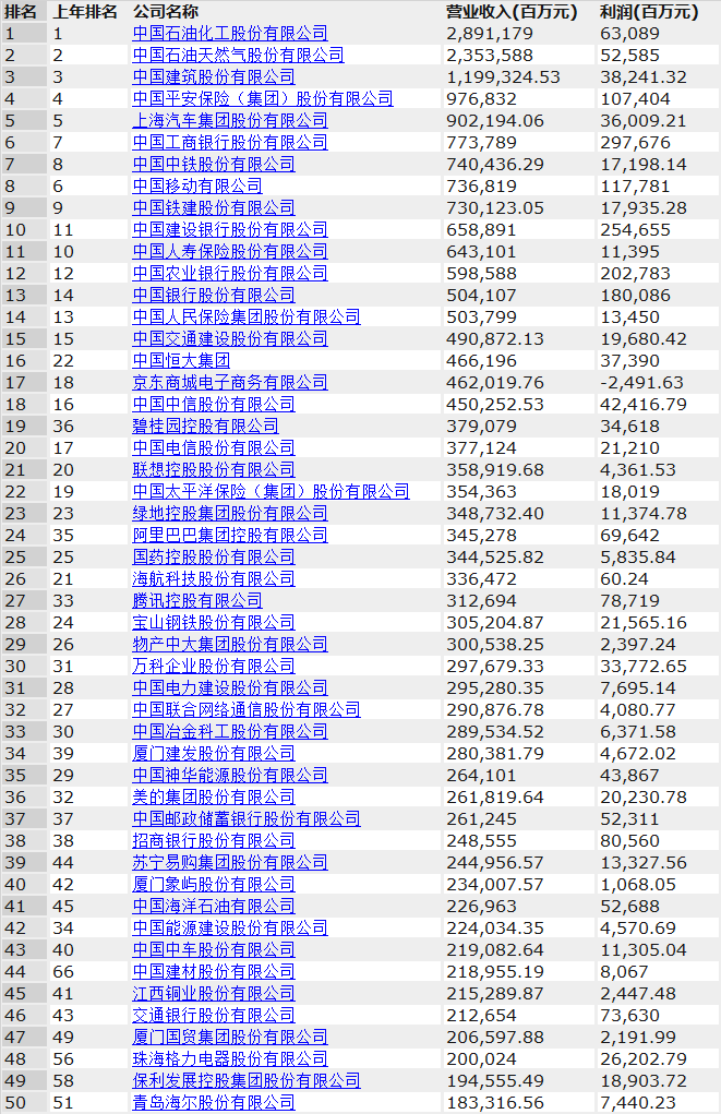 附2019《財(cái)富》中國500強(qiáng)全名單: