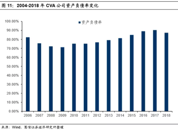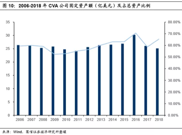 固定資產金額大,資產負債率較高。垃圾焚燒行業(yè)總資產屬性決定了公司固定 資產在總資產的占比以及資產負債率一直處于較高水平。CVA 歷年的固定資產 金額均超過 24 億美元,占總資產的比重也超過了 50%。其資產負債率也一直 維持在 70%左右。