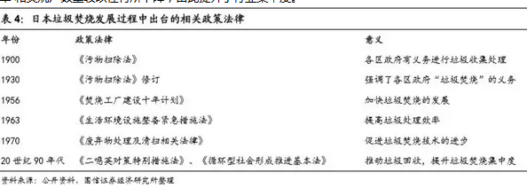 1900 年,日本制定了第一部垃圾處理相關的法律《污物掃除法》,規(guī)定各自治體 有義務進行垃圾收集處理,由此開啟了日本的垃圾焚燒啟蒙時期。1924 年,日本 東京建成了首座垃圾焚燒廠,正式開始應用垃圾焚燒技術。1930 年,日本對《污 物掃除法》進行了修改,強調了各自治體要進行“垃圾焚燒”的義務,至此日本開 始由政府主導垃圾焚燒。