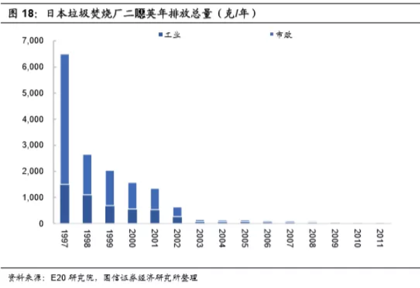 日本政府后來采取的措施,是規(guī)定焚燒廠必須維持在 850-1100 攝氏度內分解廢 棄物,焚燒爐內煙氣在焚燒爐內停留超過 2 秒鐘,并持續(xù)噴射活性炭等吸附劑, 然后使用布袋除塵器來捕集細微顆粒,從而最大限度減少二噁英的生成與排放。 日本法律規(guī)定的排放標準中,根據焚燒爐規(guī)模大小設置不同的標準量??傮w來 看,最高不得超過 0.1ng-TEQ/M3N,高標準高要求使得日本的二噁英排放量急 劇下降,到 2011 年時,日本的垃圾焚燒廠排放二噁英毒性當量總量僅為 59 克, 其中生活垃圾焚燒廠排放 32 克,工業(yè)廢物焚燒廠排放 27 克,較 1997 年降低 了 99%。目前,日本垃圾焚燒廠排放物已經接近空氣,二噁英的含量趨近于 0。