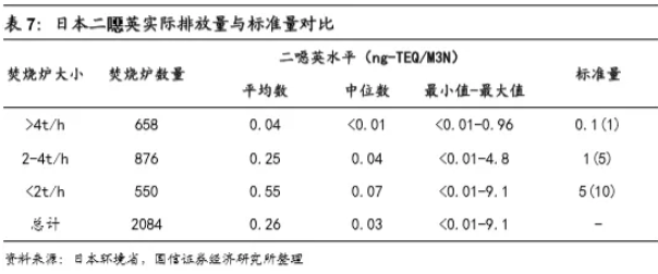 污染物排放標準高,二噁英排量控制有效。日本的垃圾焚燒技術成熟先進,在焚燒體量巨大的情況下,政府為了降低焚燒廢物排放對環(huán)境和公民健康造成傷害,專門建立了規(guī)定污染物排放標準的國家法律,可見日本對控制污染物的強制性和決心。法律規(guī)定,焚燒廠排放的一般污染物中,氮氧化物不得超過 187mg/m3、二氧化硫不得超過 71mg/m3、氯化氫不得超過 263mg/m3、重金屬不得超過 3mg/m3。以日本最著名的舞洲工廠的實際排放量作為對比,該工廠的各項污染物排放指標均遠遠小于標準量,氯化氫排放量更僅僅為標準量的 0.25%,足以證明日本焚燒技術優(yōu)秀、污染排放控制嚴格有效。