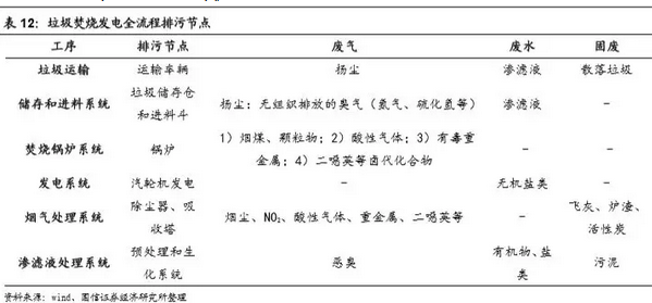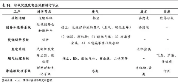 垃圾焚燒發(fā)電流程主要分為垃圾前端收集處理、垃圾發(fā)電以及末端煙氣、爐渣、 飛灰處理等。在項目運行過程中,會產生煙氣、滲濾液、飛灰、爐渣等污染物。 為減少生活垃圾焚燒造成的二次污染,環(huán)保部公布推出了《生活垃圾焚燒污染控制標準(GB18485-2001)》,替代國家環(huán)境保護總局發(fā)布的《上火垃圾焚燒污染控制標準(GWKB3-2000)》,并于 2014 年進行了修訂。
