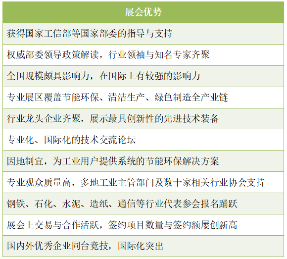 在工業(yè)和信息化部的指導(dǎo)下,在國家發(fā)改委 、生態(tài)環(huán)境部、科技部等國家部委的大力支持下,展會已成功舉辦五屆,取得了豐碩成果。本屆展會在繼承以往優(yōu)勢的基礎(chǔ)上,繼續(xù)改進(jìn),將會具有以下優(yōu)勢和特點(diǎn):
