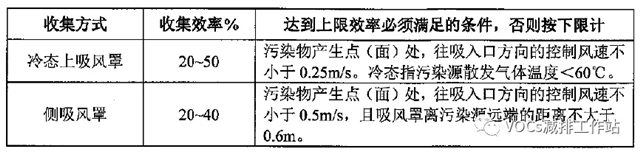 按照上表,如果收集效率要達到90%,那可選擇的收集方式即是廢氣管直連或者密閉收集,但回到原來的問題,這些收集方式的收集效率是如何計算出?難道是直接認定?關(guān)于VOCs治理工程項目中,去除(處理)效率較好理解,可直接計算核定,但全部項目都要求高處理效率似乎不合理,環(huán)評單位在編制該部分時編制人員結(jié)合工程經(jīng)驗(不論自己的還是別人的)也要充分考慮。