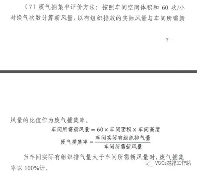再者,各地的環(huán)保政策文件有對各行業(yè)的廢氣收集效率有硬性要求,一般都不低于70%,大多數(shù)在80-90%之間,關(guān)于收集效率的計算,目前暫未找到統(tǒng)一的計算規(guī)則,以監(jiān)管單位對直接對某種收集方式直接認定的居多,一些地方性的文件也出臺過計算的規(guī)則,如下文: