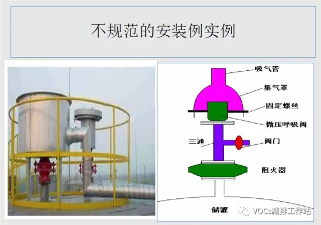 當(dāng)然,罐區(qū)管道收集需要特殊對待,罐頂大小呼吸逸散氣并不是在呼吸閥套一個密閉罩就可以解決的。