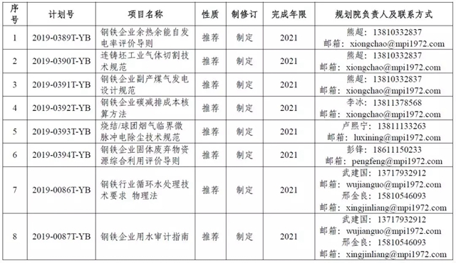 根據(jù)工信廳科函〔2019〕126號(hào),由冶金工業(yè)規(guī)劃研究院等提出的《鋼鐵行業(yè)循環(huán)水處理技術(shù)要求 物理法》、《連鑄坯工業(yè)氣體切割技術(shù)規(guī)范》、《鋼鐵企業(yè)碳減排成本核算方法》等8項(xiàng)冶金行業(yè)標(biāo)準(zhǔn)已正式立項(xiàng)。