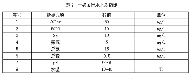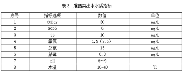 原水經(jīng)處理后,出水水質(zhì)達(dá)到《城鎮(zhèn)污水處理廠污染物排放標(biāo)準(zhǔn)》一級A標(biāo)準(zhǔn)或參照《地表水環(huán)境質(zhì)量標(biāo)準(zhǔn)》IV類水的準(zhǔn)四類水達(dá)標(biāo)排放,水質(zhì)指標(biāo)見下表: