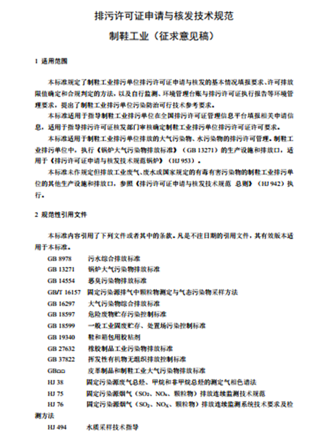 2.排污許可證申請(qǐng)與核發(fā)技術(shù)規(guī)范 制鞋工業(yè)(征求意見稿)
