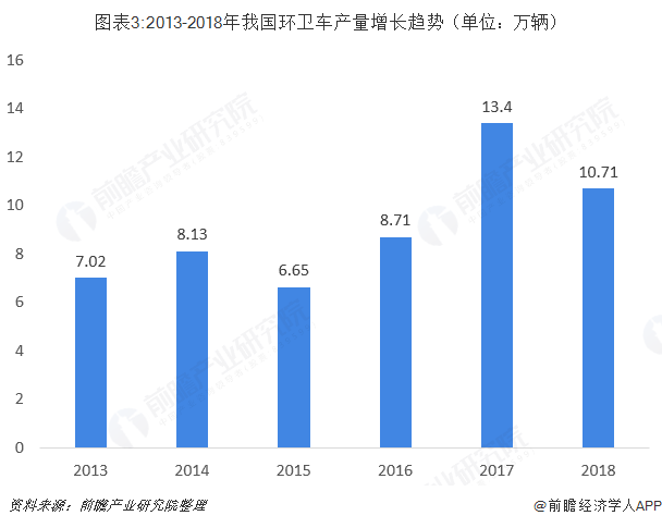根據(jù)中國專用汽車行業(yè)月度數(shù)據(jù)服務(wù)報告的統(tǒng)計數(shù)據(jù),2013-2018年我國環(huán)衛(wèi)車輛產(chǎn)量呈快速增長趨勢。2018年我國環(huán)衛(wèi)車產(chǎn)量達到10.71萬輛。