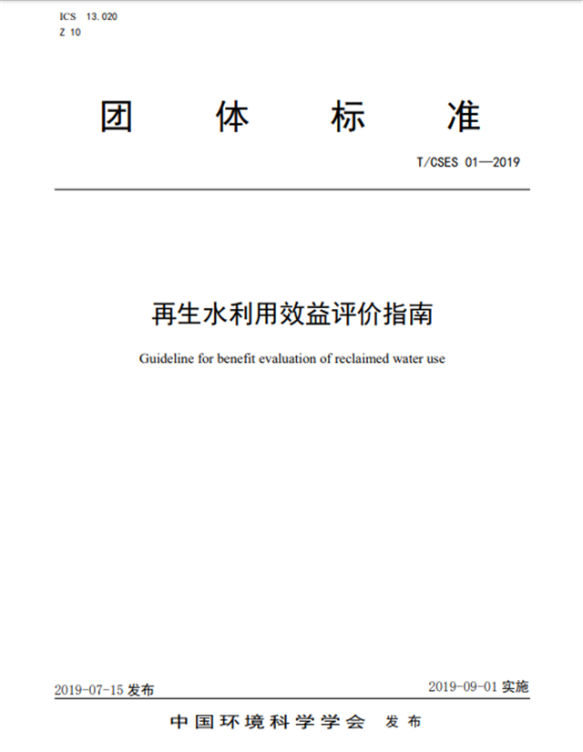 2019年7月15日,中國環(huán)境科學學會團體標準《再生水利用效益評價指南》正式發(fā)布,標準編號為“T/CSES 01-2019”。該標準由中國環(huán)境科學學會水處理與回用專業(yè)委員會(掛靠單位:清華大學)胡洪營教授團隊牽頭,中國城市規(guī)劃設計研究院、北京市環(huán)境保護科學研究院、信開水環(huán)境投資有限公司、光大水務(深圳)有限公司等作為參編單位共同起草,充分吸納了生產(chǎn)、科研、用戶等方面有代表性的技術力量共同編寫標準,形成以市場為導向、研究機構為支撐、產(chǎn)學研用相結合的組織模式。