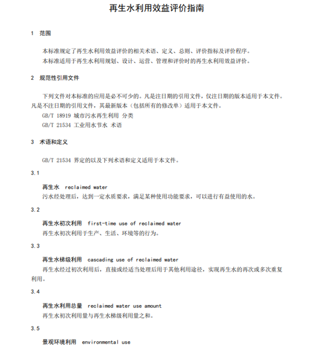 《再生水利用效益評價指南》團體標準規(guī)定了再生水利用效益評價的相關術語定義、評價指標及定量評價方法和程序,適用于再生水利用規(guī)劃、設計、運營、管理和評價時的再生水利用效益評價。該團體標準的發(fā)布,對規(guī)范再生水利用效益評價工作,指導再生水利用規(guī)劃、設計、運營、管理、評價,提高再生水利用效益,促進再生水資源的合理、高效開發(fā)與利用具有積極意義。