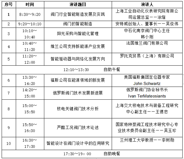 閥門(mén)分論壇日程安排 10月17日全天 漢諾威廳(4層)