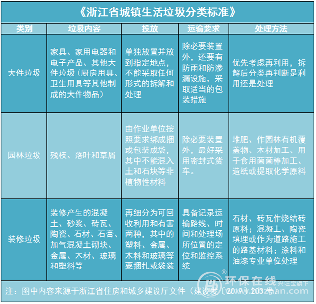 除上述四類垃圾外,《標(biāo)準(zhǔn)》還針對(duì)大件垃圾、園林垃圾和裝修垃圾作出了分類投放、分類處置的具體規(guī)范,在投放和處理時(shí)要按照相關(guān)要求進(jìn)行細(xì)化處理。
