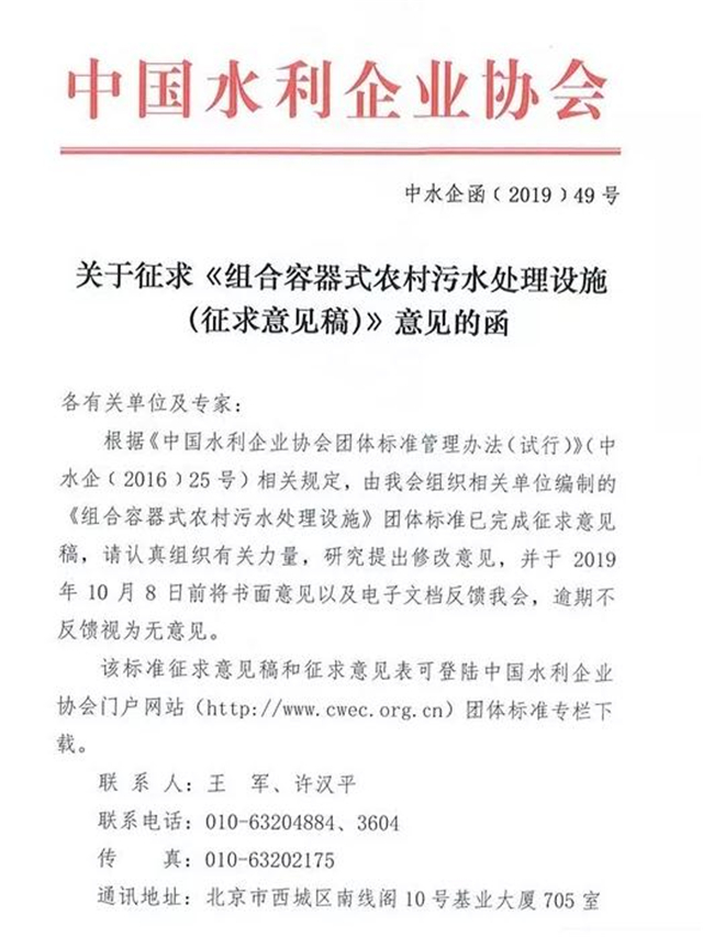 近日,中國水利企業(yè)協(xié)會團(tuán)體標(biāo)準(zhǔn)——《組合容器式農(nóng)村污水處理設(shè)施》征求意見,標(biāo)準(zhǔn)規(guī)定了組合容器式農(nóng)村污水處理設(shè)施的定義,設(shè)計水量和水質(zhì),分類和型號,處理工藝,容器結(jié)構(gòu)和材料,性能和測試方法,檢驗規(guī)則,標(biāo)志、運(yùn)輸、儲存等。標(biāo)準(zhǔn)適用于農(nóng)村地區(qū)集中式以及分散式農(nóng)戶新建、擴(kuò)建和改建的污水處理設(shè)施,城區(qū)可參照執(zhí)行。
