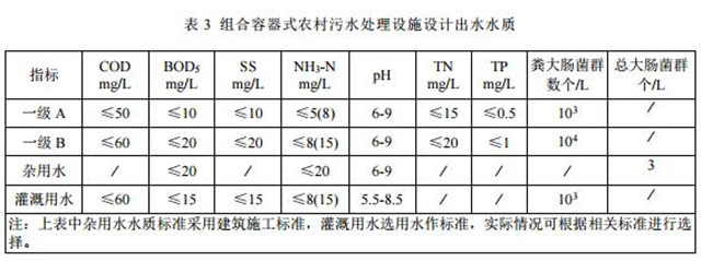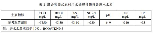 4.2.1 設(shè)計進(jìn)水水質(zhì)一般應(yīng)通過實地調(diào)查結(jié)果確定。組合容器式農(nóng)村污水處理設(shè)施的設(shè)計進(jìn)水水質(zhì)見表 2。