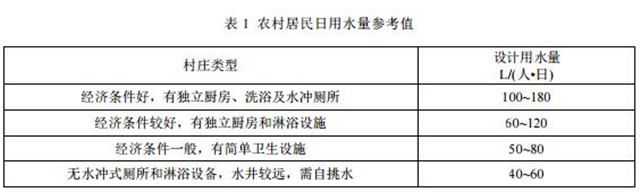 污水設(shè)計排放水量根據(jù)實地調(diào)查結(jié)果確定。當(dāng)調(diào)查數(shù)據(jù)缺乏時,應(yīng)結(jié)合當(dāng)?shù)赜盟F(xiàn)狀、生活習(xí)慣、經(jīng)濟(jì)條件、地區(qū)規(guī)劃等酌情確定,也可參考表 1,通過排放系數(shù)確定污水量。農(nóng)村生活污水排水量一般為總用水量的 40%~80%,排水設(shè)施完善的地區(qū)可取上限值,排水設(shè)施不完善的地區(qū)視具體情況取中值或下限值。