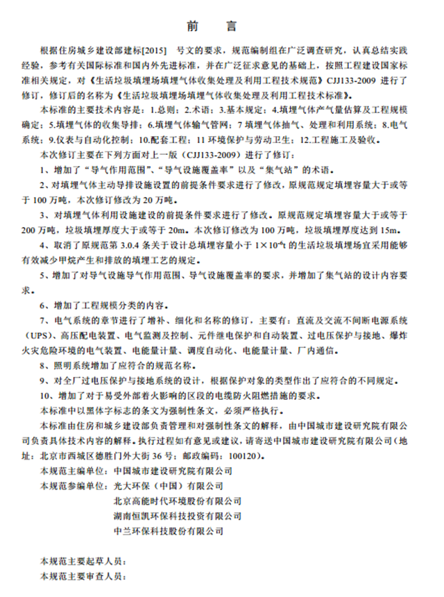 根據(jù)住房和城鄉(xiāng)建設(shè)部《關(guān)于印發(fā)2016年工程建設(shè)標(biāo)準(zhǔn)規(guī)范制訂、修訂計劃的通知》(建標(biāo)標(biāo)函〔2015〕274號),我部組織中國城市建設(shè)研究院有限公司等單位對行業(yè)標(biāo)準(zhǔn)《生活垃圾填埋場填埋氣體收集處理及利用工程技術(shù)標(biāo)準(zhǔn)(征求意見稿)》進(jìn)行了修訂,現(xiàn)向社會公開征求意見,有關(guān)單位和公眾可通過以下途徑和方式提出反饋意見: