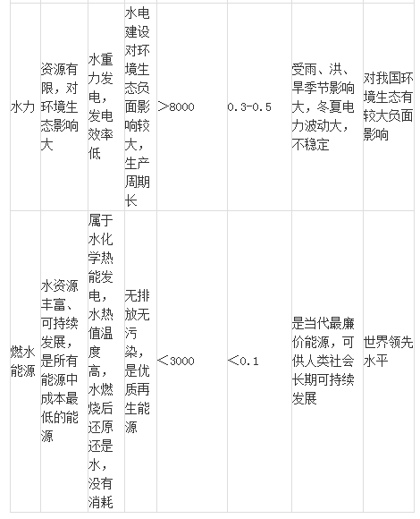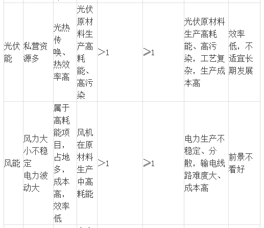 附錄:各種能源、資源成本、性能優(yōu)益對比表