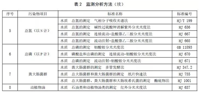 5.3 本標準各項目監(jiān)測分析方法按照表2 執(zhí)行。本標準發(fā)布后,國家新發(fā)布的其他相關(guān)監(jiān)測分析方法也可作為本標準的監(jiān)測分析方法。