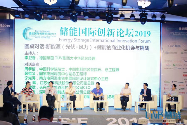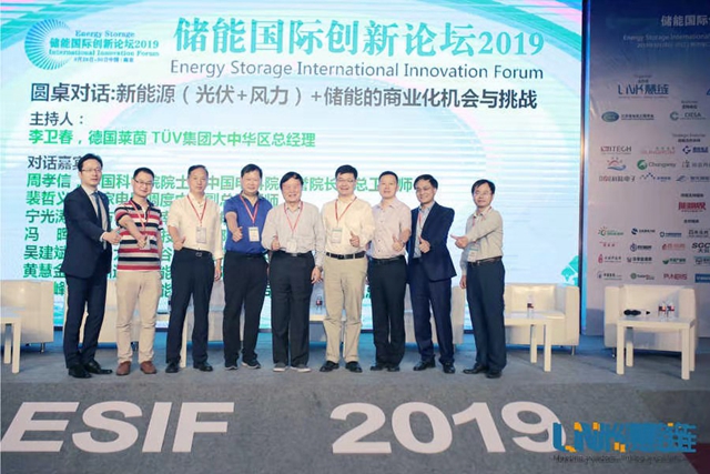 全體大會最后,由德國萊茵 TÜV集團(tuán)大中華區(qū)總經(jīng)理李衛(wèi)春主持圓桌對話,周孝信院士、裴哲義副總工、寧光濤主任、江蘇愛康馮暉副總裁、太湖能谷吳建斌博士、邁格瑞能黃慧金總經(jīng)理、東方日升儲能事業(yè)部秦宇峰副總經(jīng)理、金風(fēng)科技劉日新副總裁參與,共同圍繞新能源(光伏+風(fēng)力)+儲能的商業(yè)化機(jī)會與挑戰(zhàn)做了精彩討論。