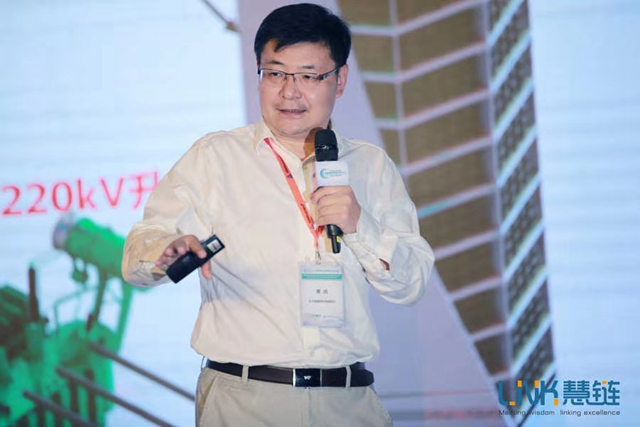 上海交大能源研究院副院長蔡旭就百M(fèi)W級高壓體系電池儲能系統(tǒng)發(fā)表演講。