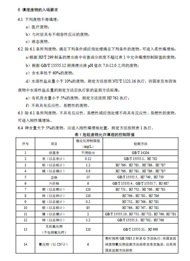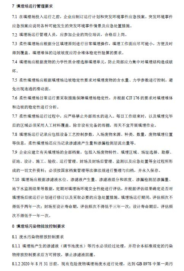 該標(biāo)準(zhǔn)自2020年6月1日起實(shí)施,自實(shí)施之日起,《危險(xiǎn)廢物填埋污染控制標(biāo)準(zhǔn)》(GB18598-2001)同時(shí)廢止。