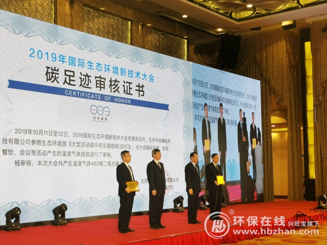 圖為2019國際生態(tài)環(huán)境新技術(shù)大會 中創(chuàng)碳投榮獲證書