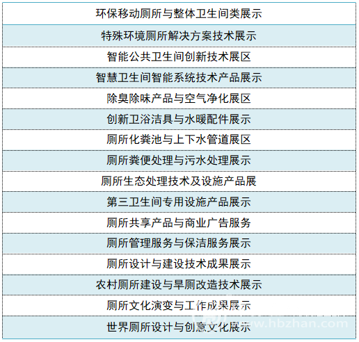 中國廁博會覆蓋旅游廁所、環(huán)衛(wèi)廁所、農(nóng)村廁所、智慧廁所、醫(yī)院廁所、學校廁所、廁所配件及廁所用品等板塊。
