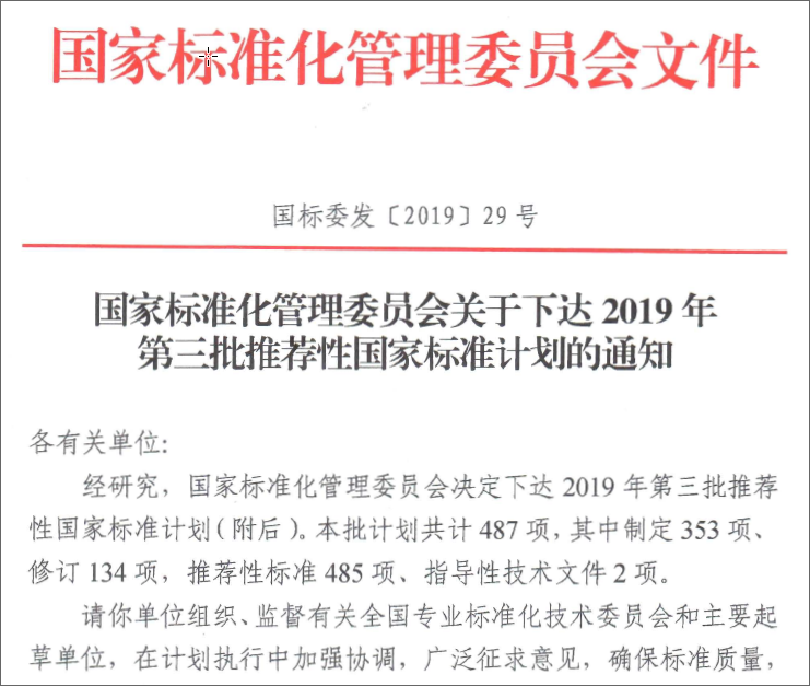 相關(guān)資料下載:國家標(biāo)準(zhǔn)化管理委員會關(guān)于下達(dá)2019第三批推薦性國家標(biāo)準(zhǔn)計劃的通知.pdf