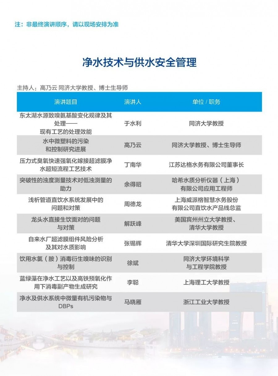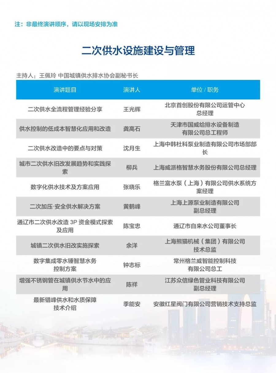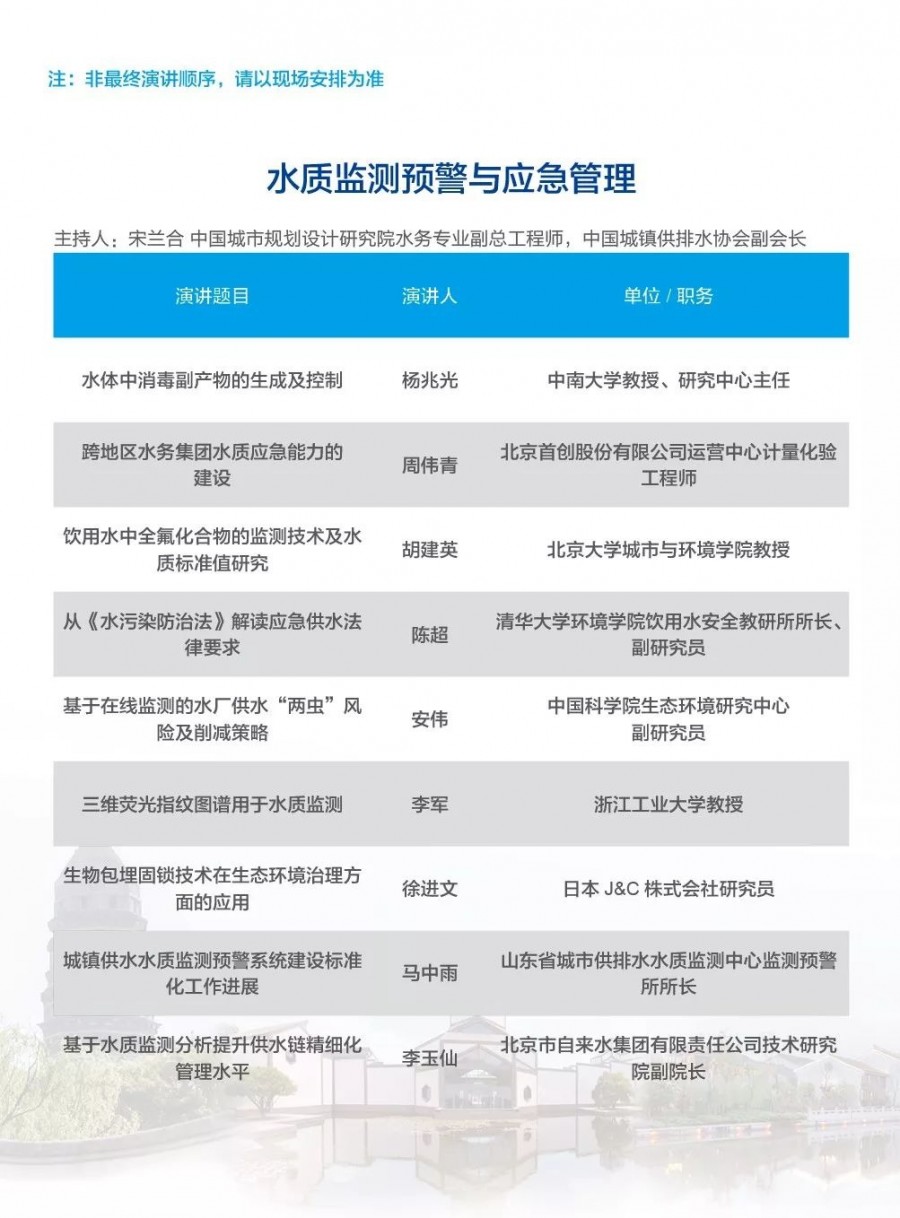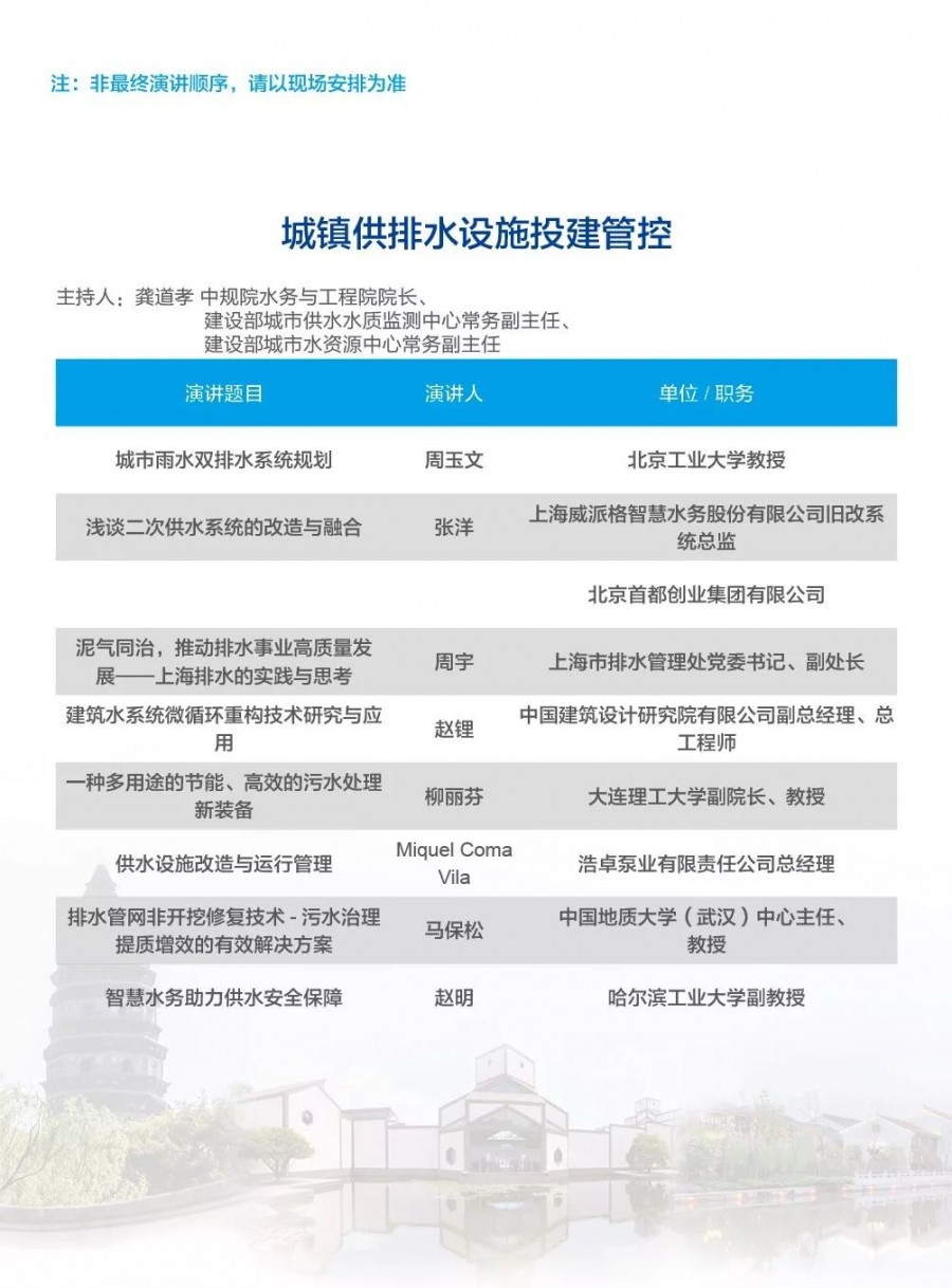 除以上分論壇外,蘇州論壇——高品質(zhì)水公共產(chǎn)品研討會建筑節(jié)水論壇、二供節(jié)能與供水安全保障、城鎮(zhèn)水環(huán)境綜合整治與管理中-法水務(wù)科技論壇、長三角一體化水務(wù)發(fā)展論壇等論壇議程正在確認(rèn)中……敬請期待!