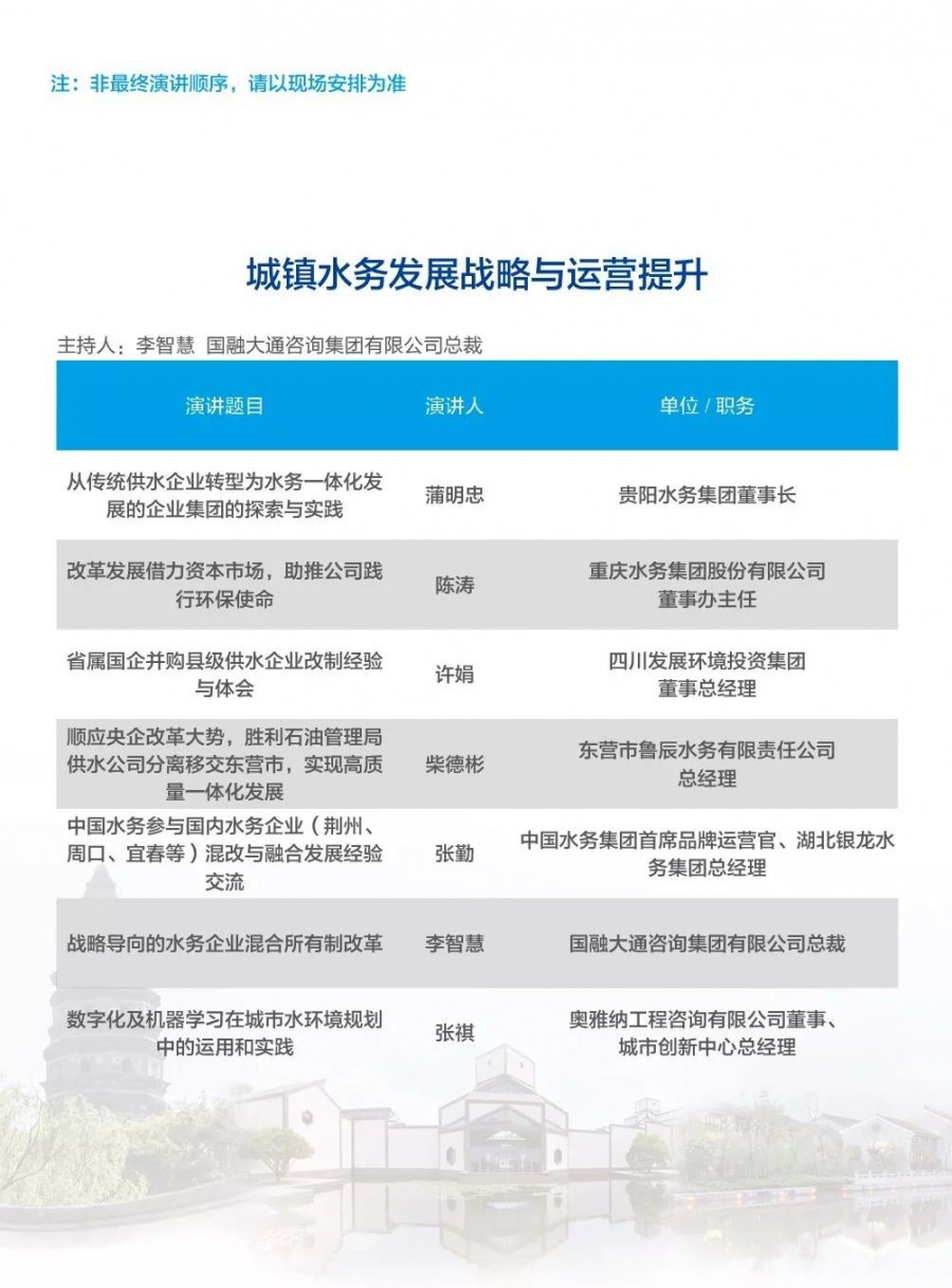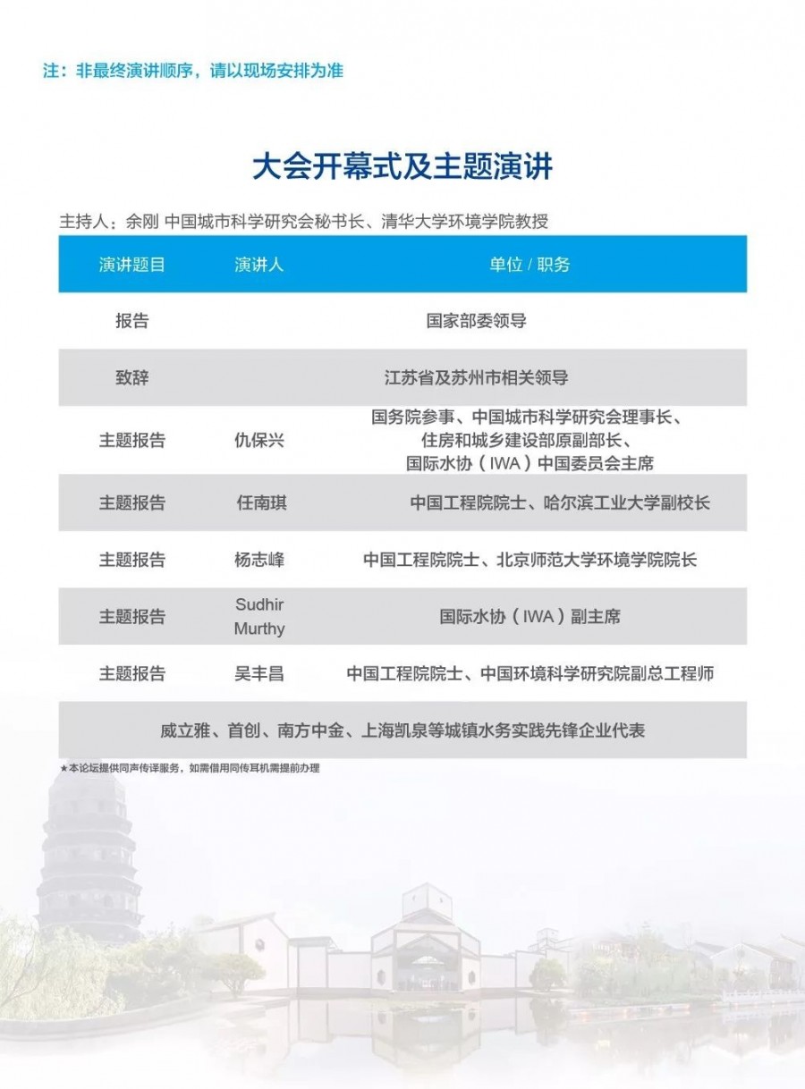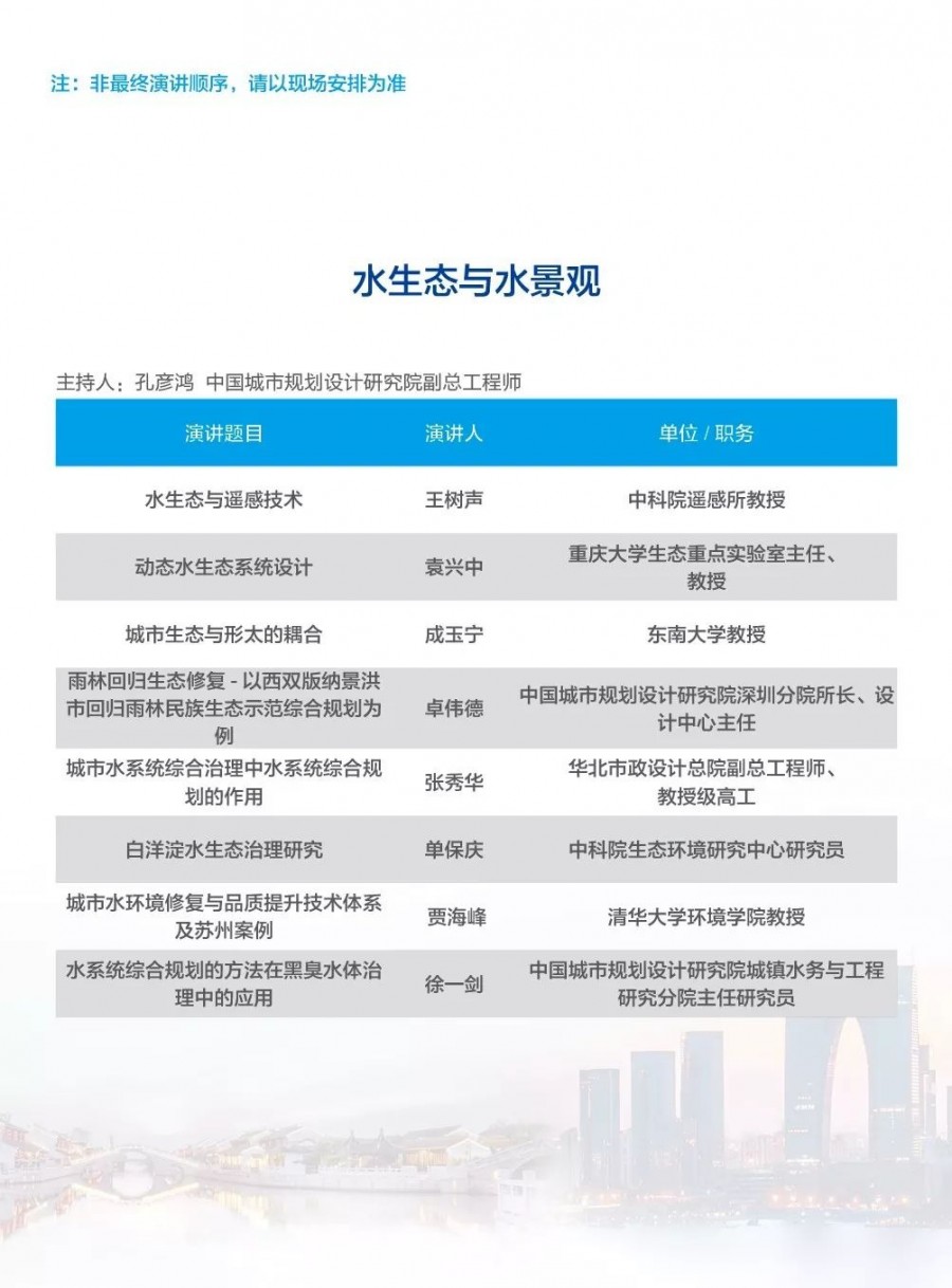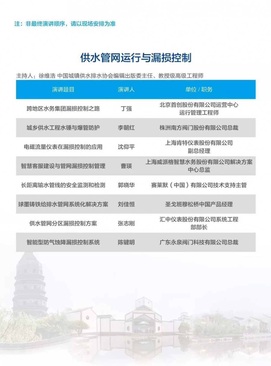 除以上分論壇外,蘇州論壇——高品質(zhì)水公共產(chǎn)品研討會建筑節(jié)水論壇、二供節(jié)能與供水安全保障、城鎮(zhèn)水環(huán)境綜合整治與管理中-法水務(wù)科技論壇、長三角一體化水務(wù)發(fā)展論壇等論壇議程正在確認(rèn)中……敬請期待!