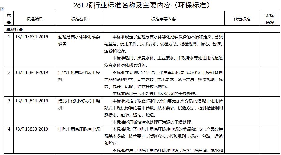 日前,工信部發(fā)布261項行業(yè)標準報批公示。其中涉及濕法煙氣脫硫設(shè)備、袋式除塵器、污泥干燥機等多項環(huán)保標準。