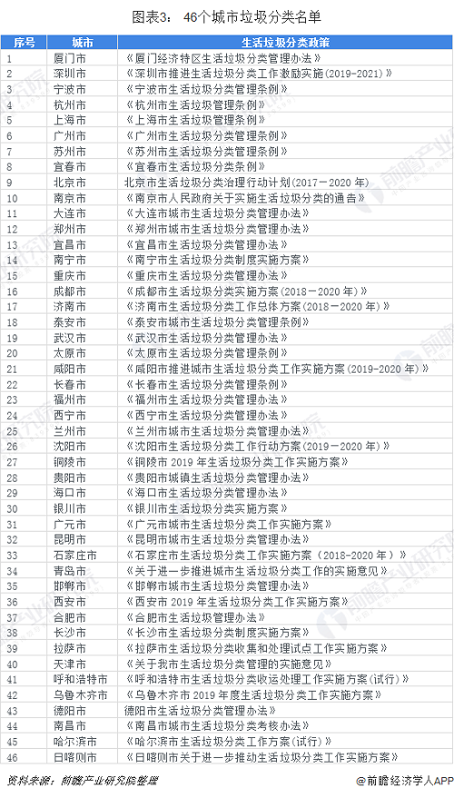 三、46個重點城市開始實施垃圾分類