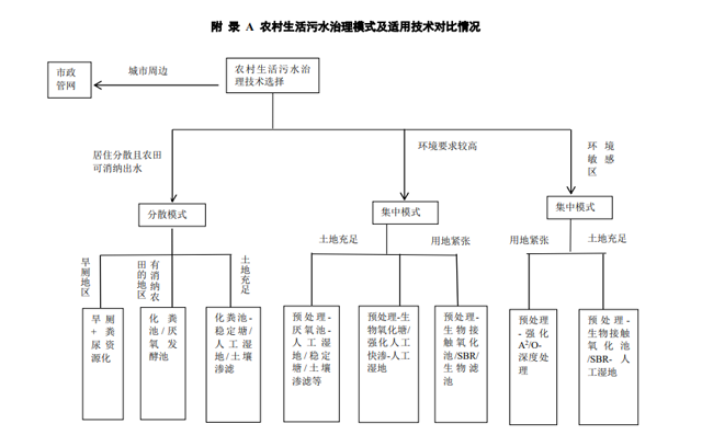 日前公布的《河北省農(nóng)村生活污水治理技術(shù)導(dǎo)則(試行)》明確要求,根據(jù)農(nóng)村的地理位置、居民集中程度、地形地貌狀況不同,選擇適宜模式對(duì)農(nóng)村污水 進(jìn)行治理。條件允許或?qū)ξ鬯欧庞袊?yán)格要求的地區(qū),宜采用建設(shè)污水治 理設(shè)施的方式確保達(dá)標(biāo)排放;其他地方要充分結(jié)合農(nóng)村改廁,借助地理自然條件、環(huán)境消納能力等進(jìn)行有效管控。具體參考下圖: