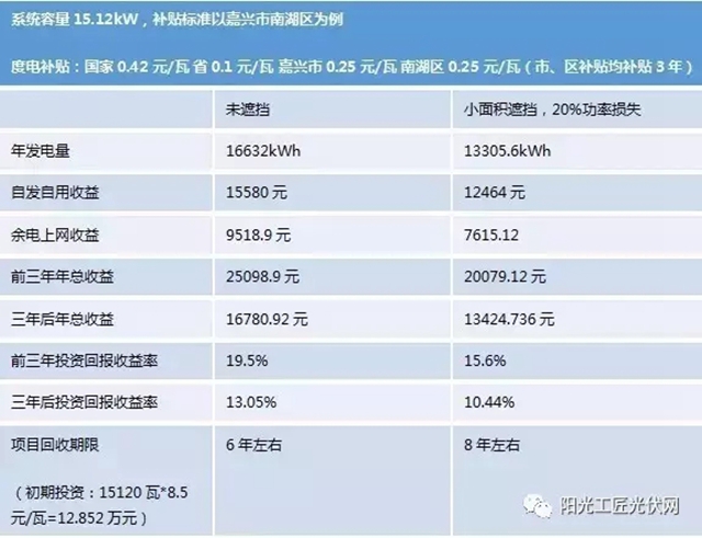 陰影遮擋對投資收益的影響有多少?