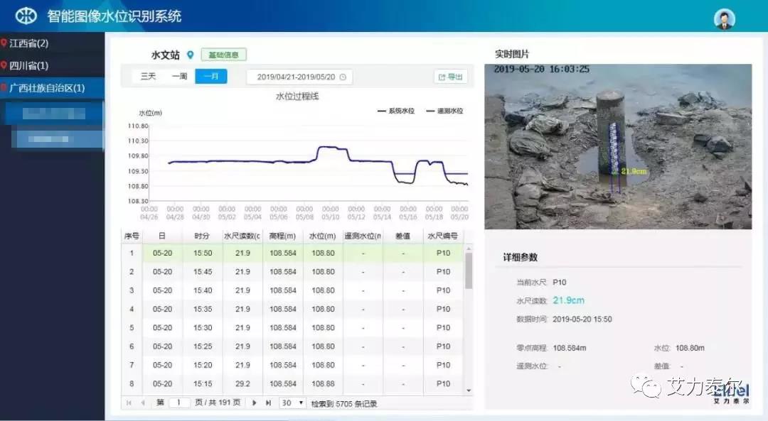 目前,該技術(shù)已經(jīng)在黑龍江、河北、江西、四川、廣西、廣東等地成功應(yīng)用。通過圖像識(shí)別技術(shù)可以實(shí)時(shí)監(jiān)視各測(cè)站情況,定時(shí)抓拍圖片,定時(shí)上傳視頻,并可進(jìn)行水位自動(dòng)識(shí)別和水尺校核,實(shí)現(xiàn)測(cè)站的無人值守、自動(dòng)化采集。該技術(shù)的采用為測(cè)站水位數(shù)據(jù)和現(xiàn)場(chǎng)情況積累了豐富的數(shù)據(jù),得到了用戶的一致認(rèn)可和好評(píng)。此外,該技術(shù)采用AI技術(shù),打破傳統(tǒng)方式測(cè)量水位、水質(zhì)的瓶頸,智能識(shí)別水位、河流流態(tài)、水質(zhì)渾濁度,并實(shí)時(shí)對(duì)采集的信息進(jìn)行智能自動(dòng)判斷、智能分析、智能告警。