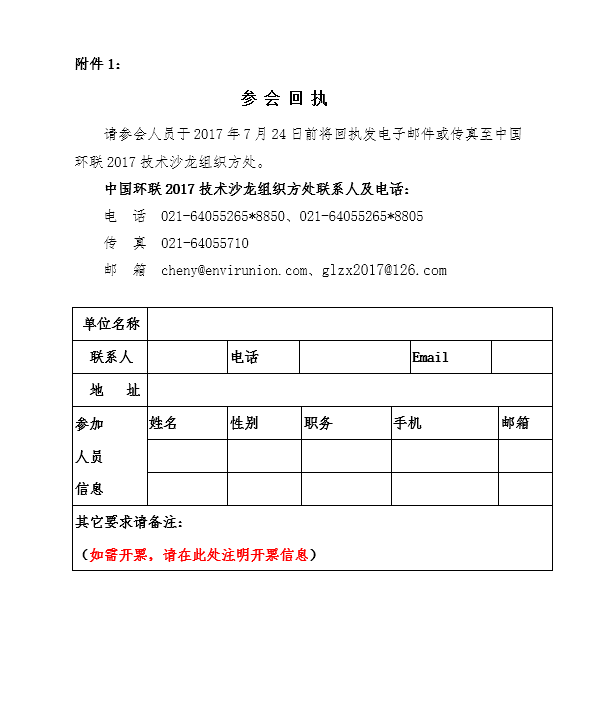 本次技術(shù)沙龍收取會(huì)議費(fèi):800元/人,中國環(huán)聯(lián)會(huì)員企業(yè)每家可免費(fèi)2人參加。